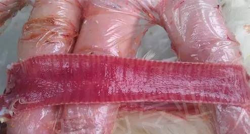 2、嗉囊下垂,黏膜粗糙增厚,黏膜表面有豆腐渣样隆起伪膜:白色念珠菌病。