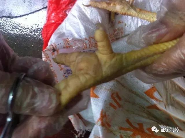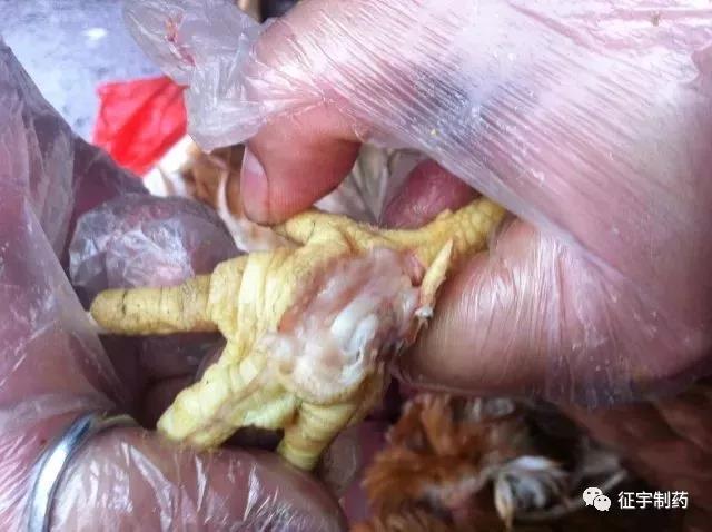 鸡滑液囊支原体病(MS)又称传染性滑膜炎,该病以侵害关节滑液,腱鞘膜为主,初期雏鸡发热、精神差,采食量低,往往被误诊为腺胃炎,慢慢发展到后期其特征症状为关节、腱鞘和爪垫肿胀,病鸡常见胸部囊肿。
