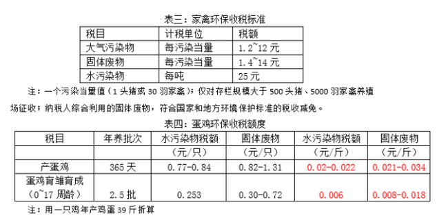 《环境保护税法》将于2018年1月1日起正式实施。环保税法规定,农业生产排放的应税物可以免税,规模化养殖场除外。存栏规模达到或超过50头牛、500 头猪或者5000 羽鸡(鸭)等禽畜养殖场都需要缴纳环保税。《环境保护税法》的实施将对蛋鸡饲养环境及设备要求更为严格,一方面提高蛋鸡养殖成本,另一方面加速散户的退出。针对产蛋鸡,水污染物税额每斤鸡蛋成本将增加0.02-0.22元,固体废物增加0.021-0.034元;针对蛋鸡育雏育成期,年养批次仅2.5批,水污染物税额每斤鸡蛋成本将增加0.006元,固体废物增加0.008-0.018元。(详情请参考表三、四)