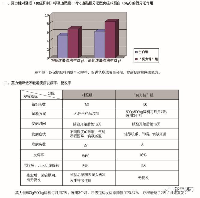 征宇制药专家历时5年精心研制的国内首创黏膜保健剂——莫力健,号称养猪场的金钟罩、铁布衫,通过固守卫气,增强黏膜免疫力,修复受损黏膜,维护黏膜的完整性,促进黏膜蛋白分泌,可降低呼吸道、消化道、生殖道病发病率90%以上。