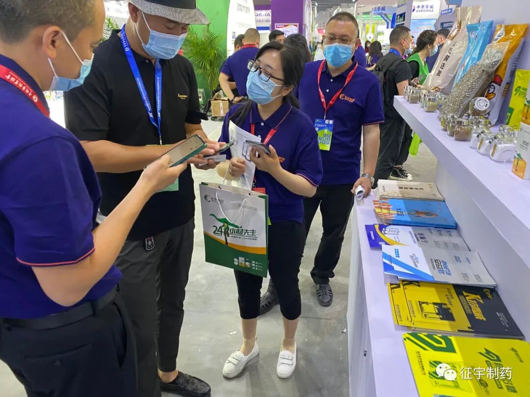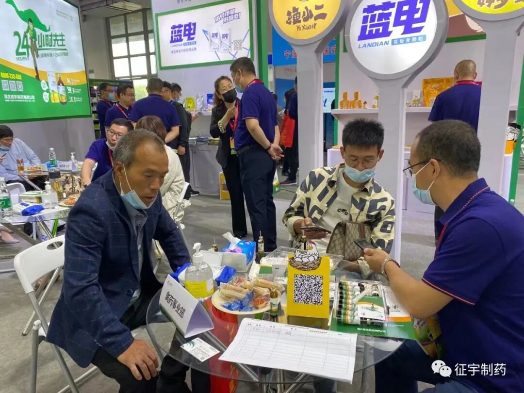 “增免净蓝中药创导品牌——蓝电”首次亮相畜博会,便惊艳全场,吸引了大批客户观摩咨询,同时征宇制药重点战略单品“快速治疗型黄芪多糖——24小时先生”、“活性发酵中药增蛋剂——好多蛋”、“水产专用保肝解毒剂——甘快好”、“初生犊牛免疫保健剂——曾小免”等产品受到了观众的青睐。
